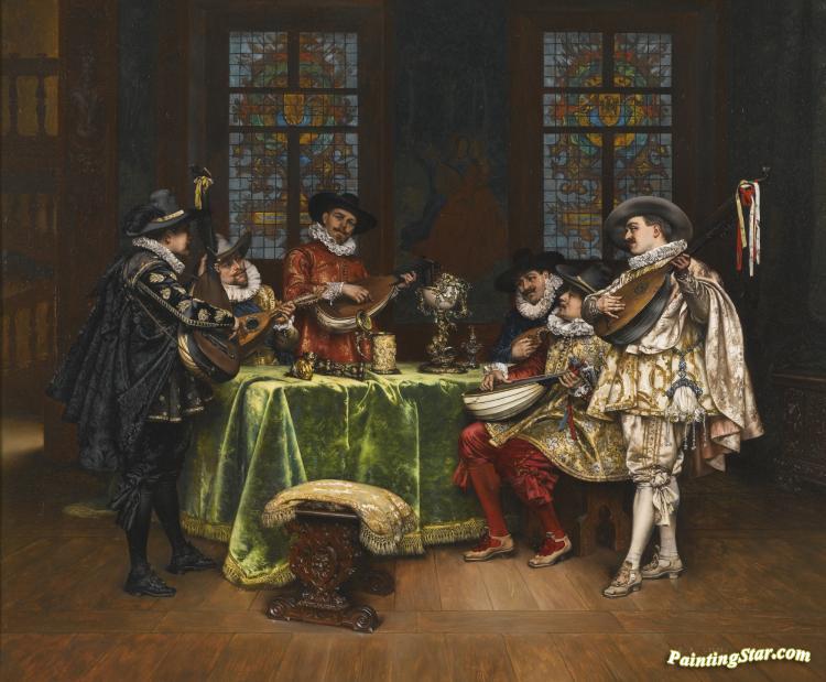 Interior With Troubadours, Art Painting by Adolphe Alexander Lesrel