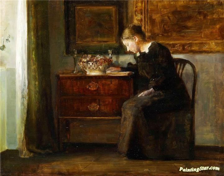 Interior With Woman Reading, Art Painting by Carl Vilhelm Holsoe