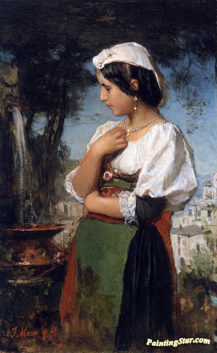 Italian Girl At A Fountain, Art Painting by Jacob Maris