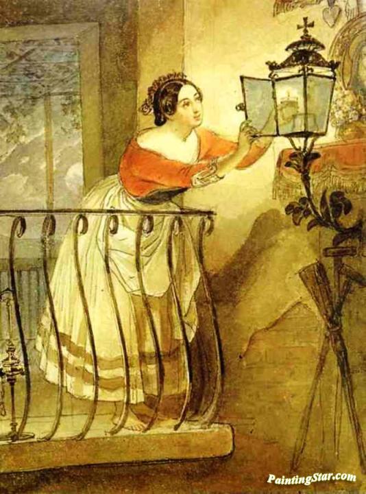 Italian Woman Lightning A Lamp Before The Image Of Madonna, Art Painting by Karl Pavlovich Bryullov