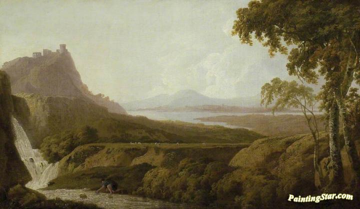 Italianate Landscape with Waterfall, Art Painting by Joseph Wright of Derby