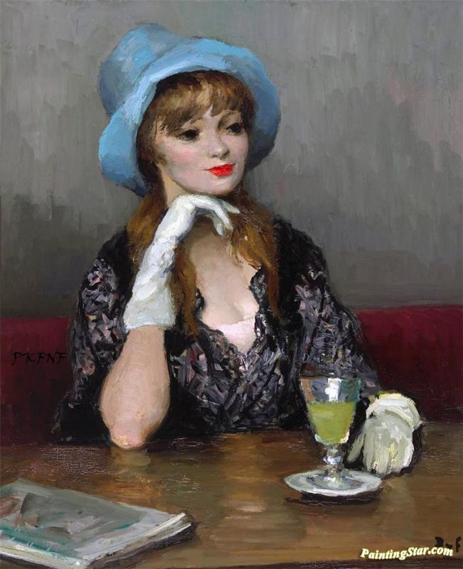 Jacqueline In A Blue Hat, Art Painting by Marcel Dyf