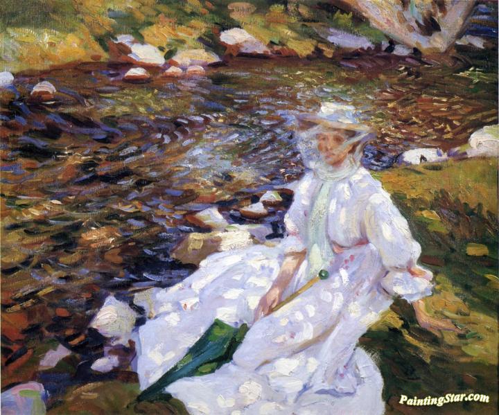 Jane Emmet de Glehn by a stream, Val d'Aosta, Art Painting by Wilfred Gabriel De Glehn