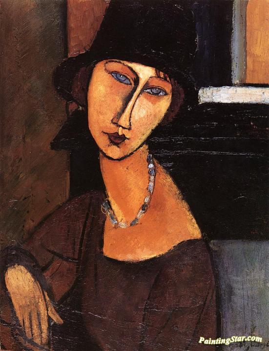 Jeanne Hebuterne with Hat and Necklace, Art Painting by Amedeo Modigliani