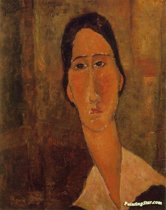 Jeanne Hebuterne with White Collar, Art Painting by Amedeo Modigliani
