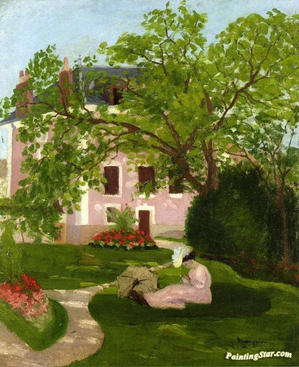 Jeanne with Umbrella, Seated in a Garden of Coulombs, Art Painting by Henri Manguin