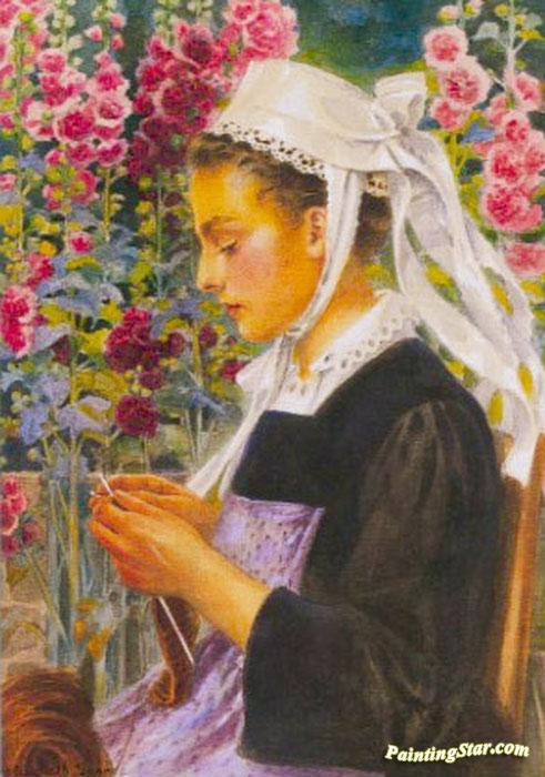 Jeune Faouetaise Tricotant, Art Painting by Elisabeth Sonrel