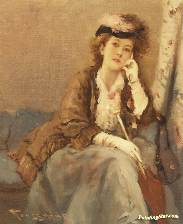 Jeune Femme a l'ombrelle, Art Painting by Fernand Toussaint