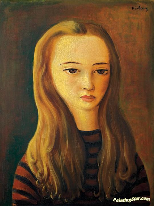 Jeune Fille Aux Longs Cheveux, Art Painting by Moise Kisling