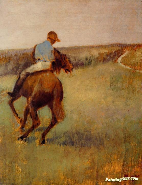 Jockey in Blue on a Chestnut Horse, Art Painting by Edgar Degas
