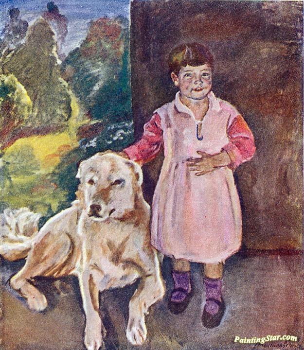 Katya with a dog, Art Painting by Pyotr Konchalovsky