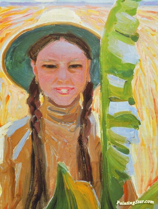 Kirsti with Banana Leaves, Art Painting by Akseli Gallen-Kallela