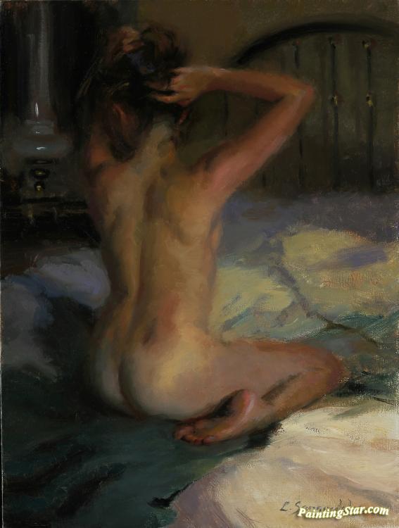 Kneeling Nude In Morning Light, 2012, Art Painting by Lynn Sanguedolce