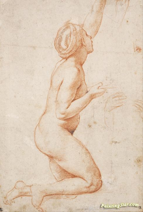 Kneeling Nude Woman, Art Painting by Raphael