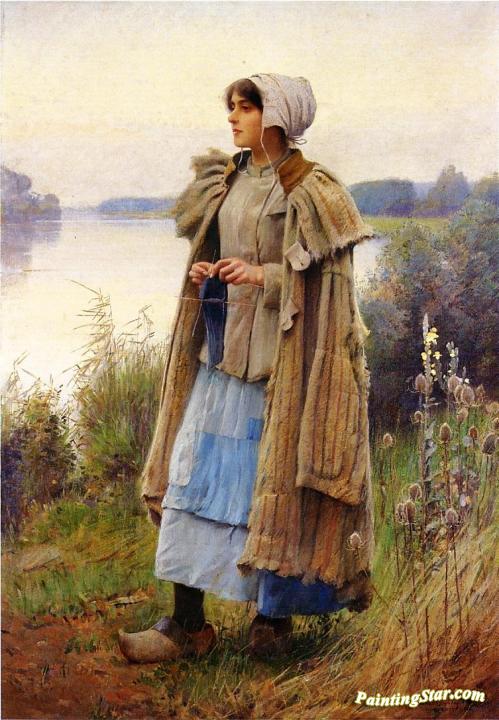 Knitting In The Fields, Art Painting by Charles Sprague Pearce