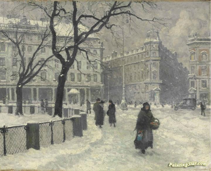 Kongens Nytorv, Copenhagen In Winter, Art Painting by Paul Gustave Fischer