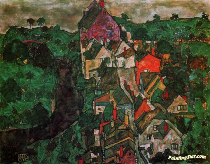 Krumau Landscape, Art Painting by Egon Schiele