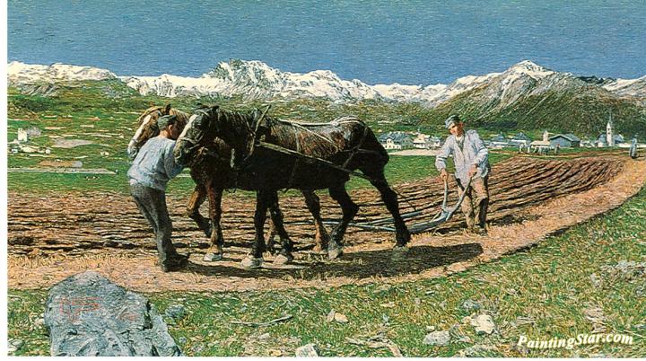 L’aratura, Art Painting by Giovanni Segantini