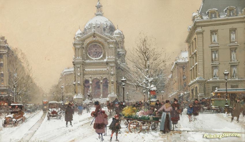 L'eglise Saint-augustin, Art Painting by Eugene Galien-Laloue