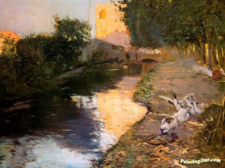 La acequia, Art Painting by Joaquin Mir Trinxet