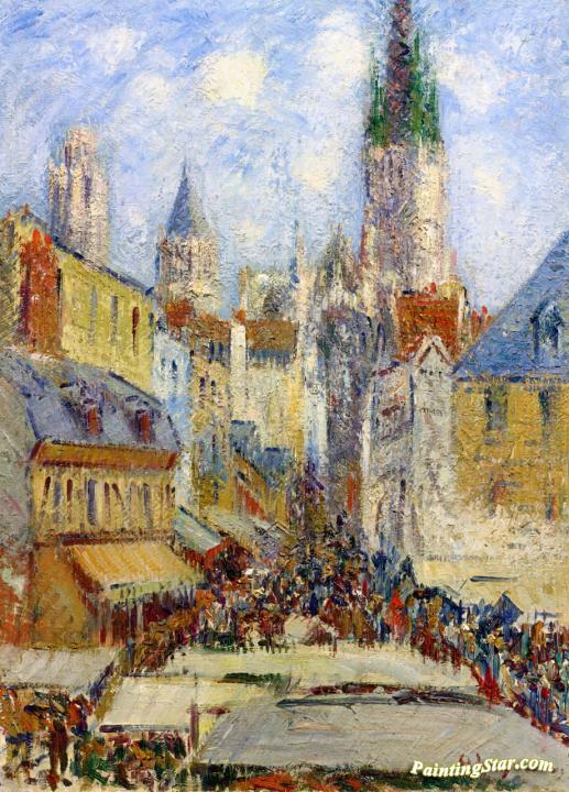 La Place de la Basse, Vielle Tour et le Marché de la Place, Rue de l'Épicerie, Art Painting by Gustave Loiseau