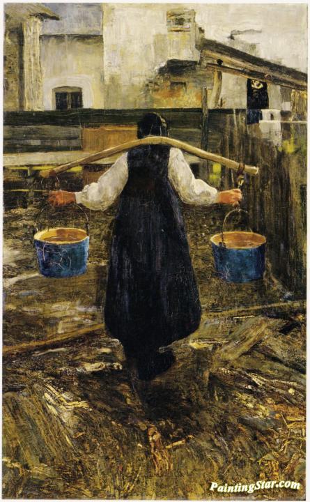 La portatrice d’aqua, Art Painting by Giovanni Segantini