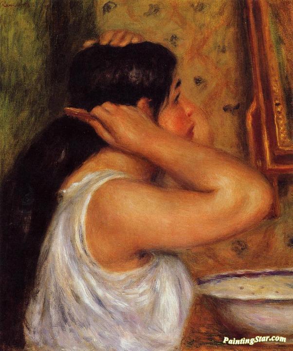 La Toilette - Woman Combing Her Hair, Art Painting by Pierre Auguste Renoir