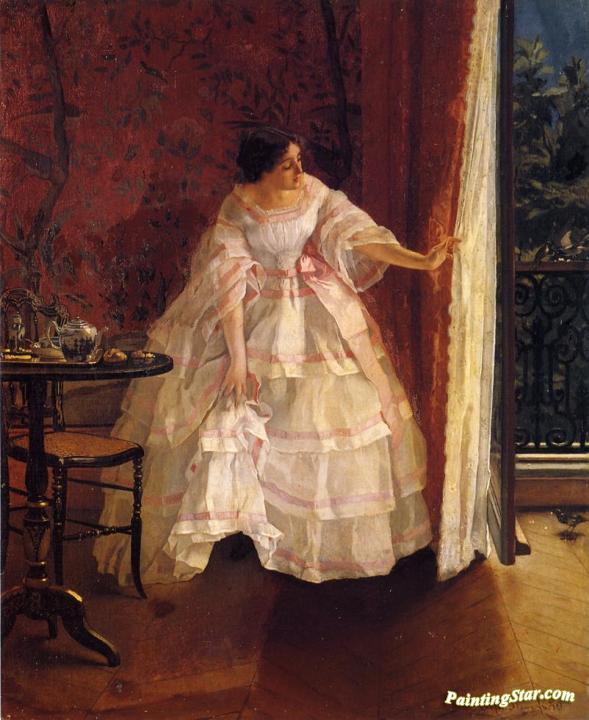 Lady at a Window Feeding Birds, Art Painting by Alfred Stevens