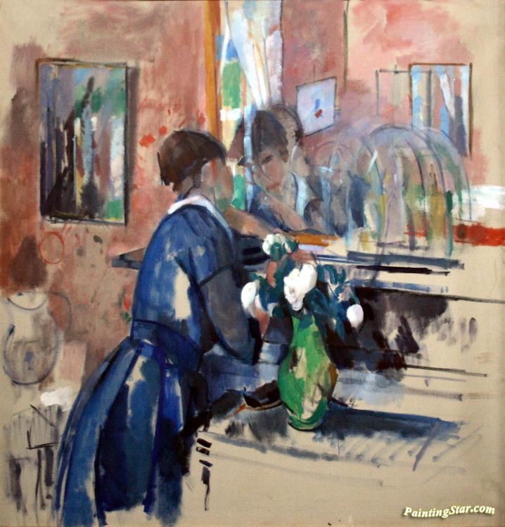 Lady In Blue In Front Of A Mirror, Art Painting by Rik Wouters