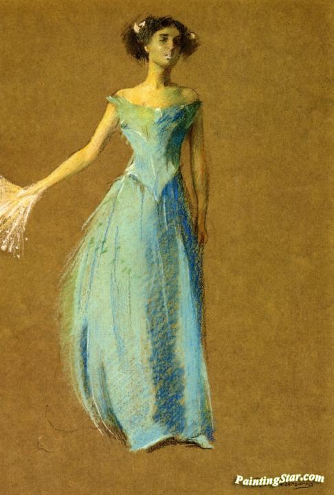 Lady in Blue, Portrait of Annie Lazarus, Art Painting by Thomas Wilmer Dewing