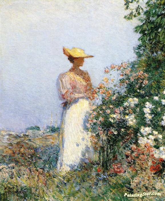 Lady in Flower Garden, Art Painting by Frederick Childe Hassam