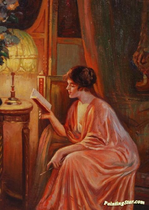 Lady Reading By Lamplight, Art Painting by Delphin Enjolras