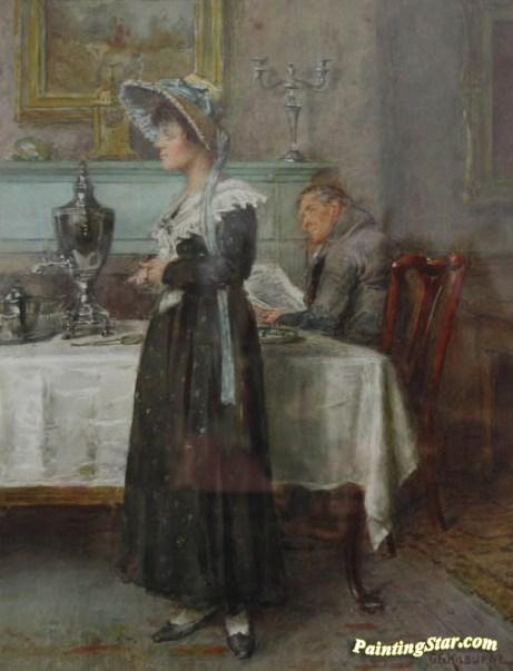 Lady standing beside a Table near a Man reading a Paper, Art Painting by George Goodwin Kilburne