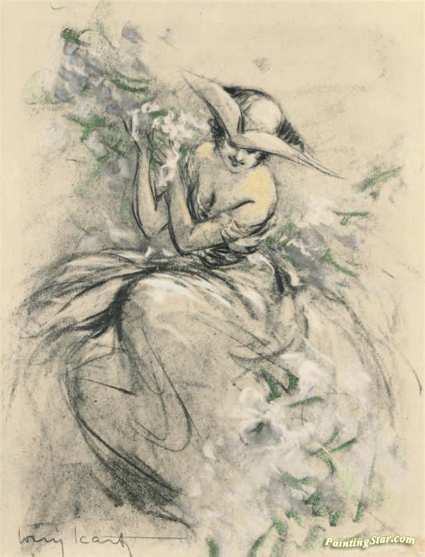 Lady Wearing A Tricorn Hat, Art Painting by Louis Icart