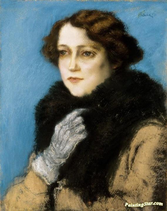 Lady with Black Boa, Art Painting by József Rippl-Rónai