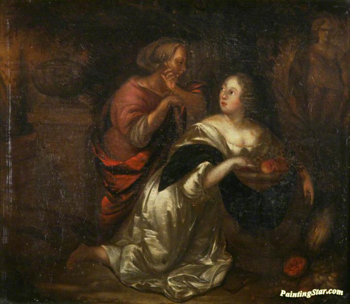 Lady with Fruit and Attendant, Art Painting by Caspar Netscher