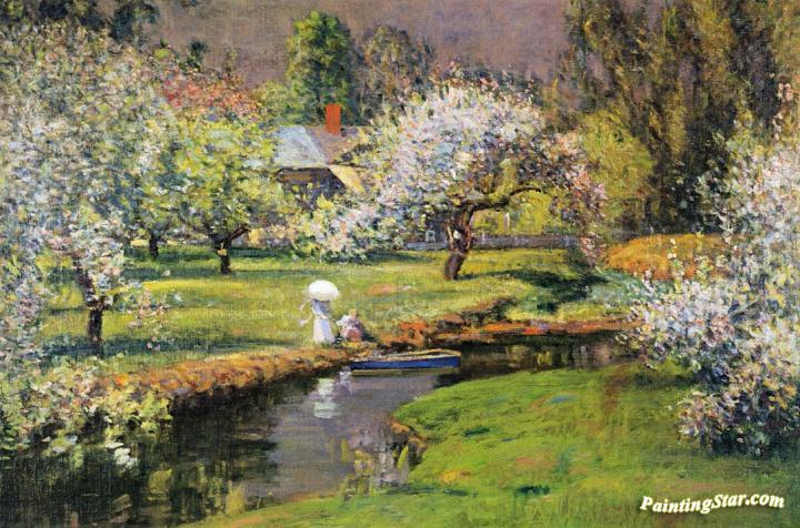 Lady With Parasol By Stream, Art Painting by Theodore Wendel