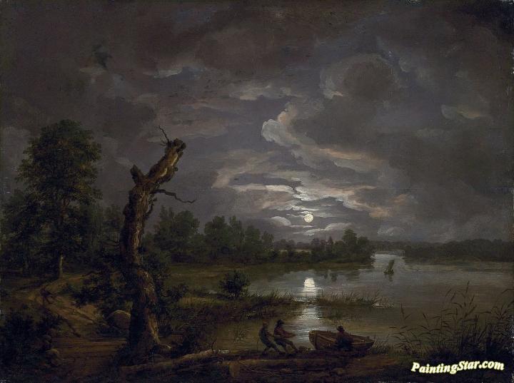 Lake Esrom by Moonlight, Art Painting by Johan Christian Dahl