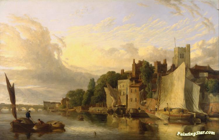 Lambeth from the River looking towards Westminster Bridge, Art Painting by James Stark