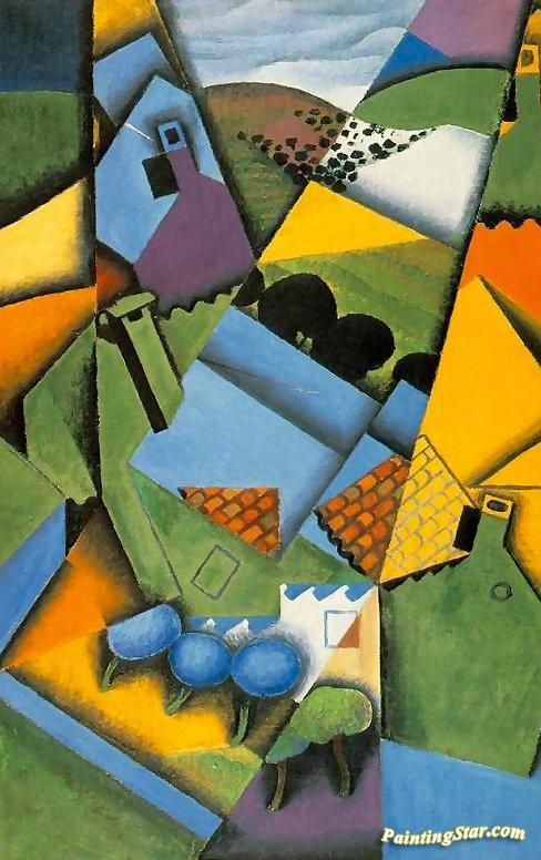 Landscape And Houses At Ceret, Art Painting by Juan Gris