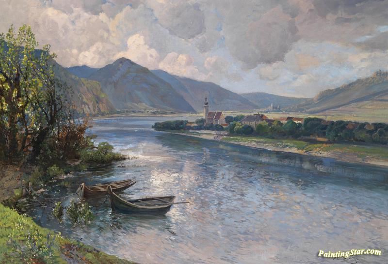 Landscape In The Wachau With View Of Mautern, Art Painting by Karl Vikas