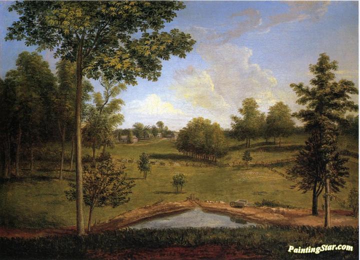 Landscape Looking Towards Sellers Hall from Mill Bank, Art Painting by Charles Willson Peale