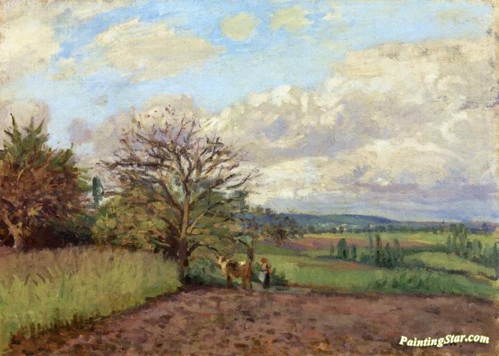 Landscape with a Cowherd, Art Painting by Camille Pissarro