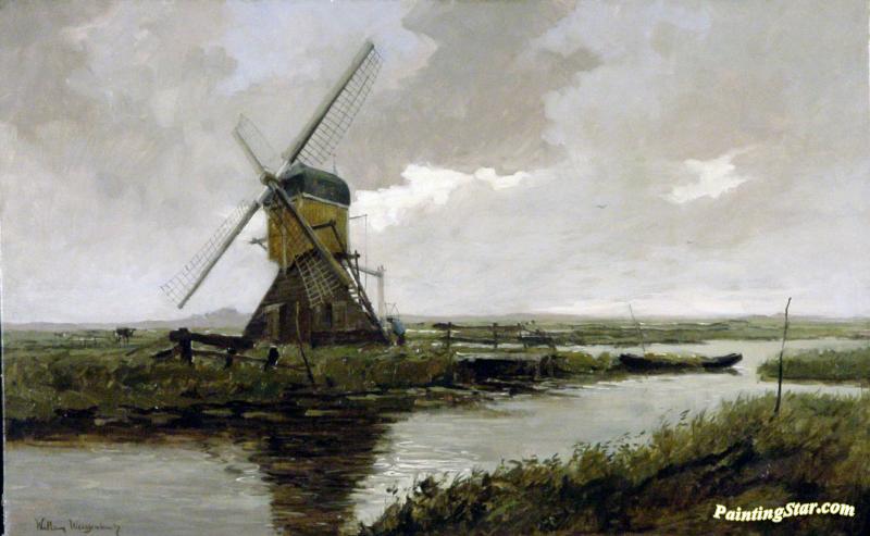 Landscape With A Mill, Art Painting by Johan Hendrik Weissenbruch