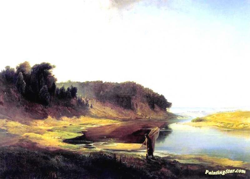 Landscape With A River And An Angler, Art Painting by Alexei Kondratevich Savrasov