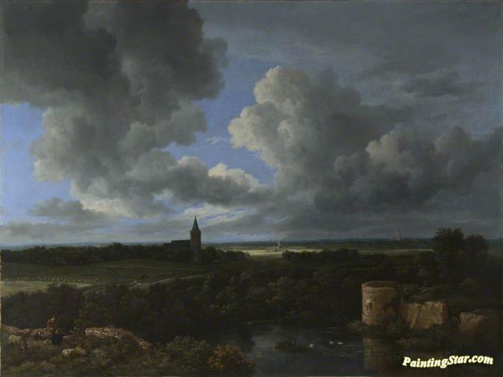 Landscape with a Ruined Castle and a Church, Art Painting by Jacob van Ruisdael