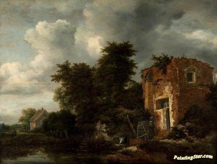 Landscape with a Ruined Tower, Art Painting by Jacob van Ruisdael