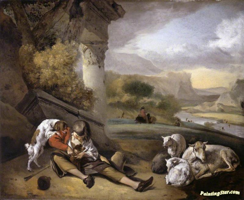 Landscape With A Sherpherd Boy, Art Painting by Jan Weenix