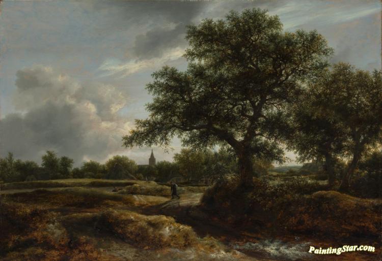 Landscape with a Village in the Distance, Art Painting by Jacob van Ruisdael