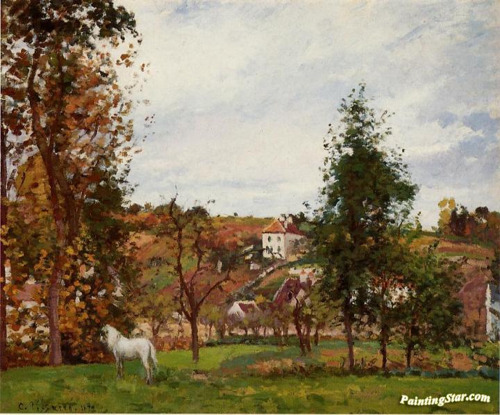 Landscape with a White Horse in a Meadow, L'Hermitage, Art Painting by Camille Pissarro